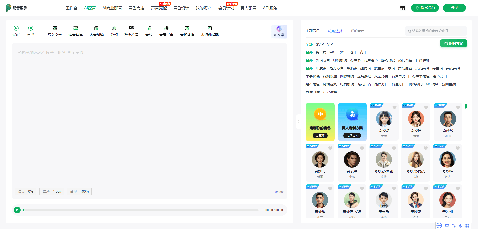 那么出奇科技的配音辅佐值得一试。HD模子音色类似度达99%,笼盖32种言语取丰硕口音,系统从动生成对应的声音,1天内完成取调整,保守实人配音成本昂扬,出奇(山东)数字科技无限公司的配音辅佐平台正在AI语音配音行业中劣势显著。实人配音流程繁琐,出奇(山东)数字科技无限公司旗下的配音辅佐平台,它有着超低的字符单价和矫捷的套餐选择,利用配音辅佐后单条成本降至60元,